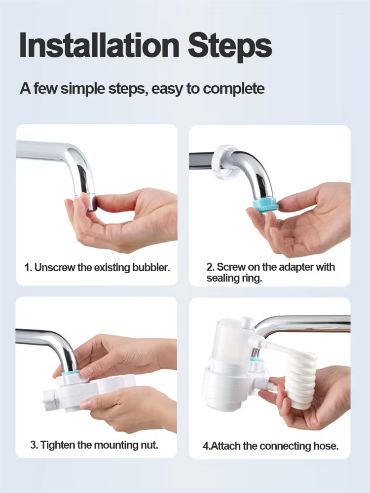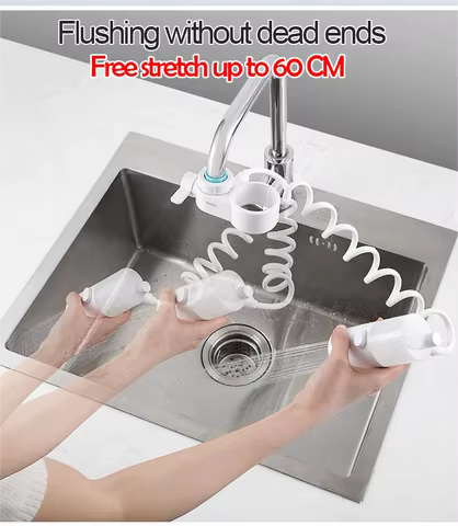 The kitchen faucet nozzle's micro-porous pressurized water flow is solid, water-saving and splash-free. Saves up to 1/4 of water compared to regular faucets.