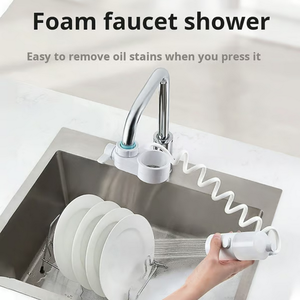 The kitchen sink sprayer attachment has two water outlet modes, a one-button switch between detergent and water, and easy-to-wash dishes.